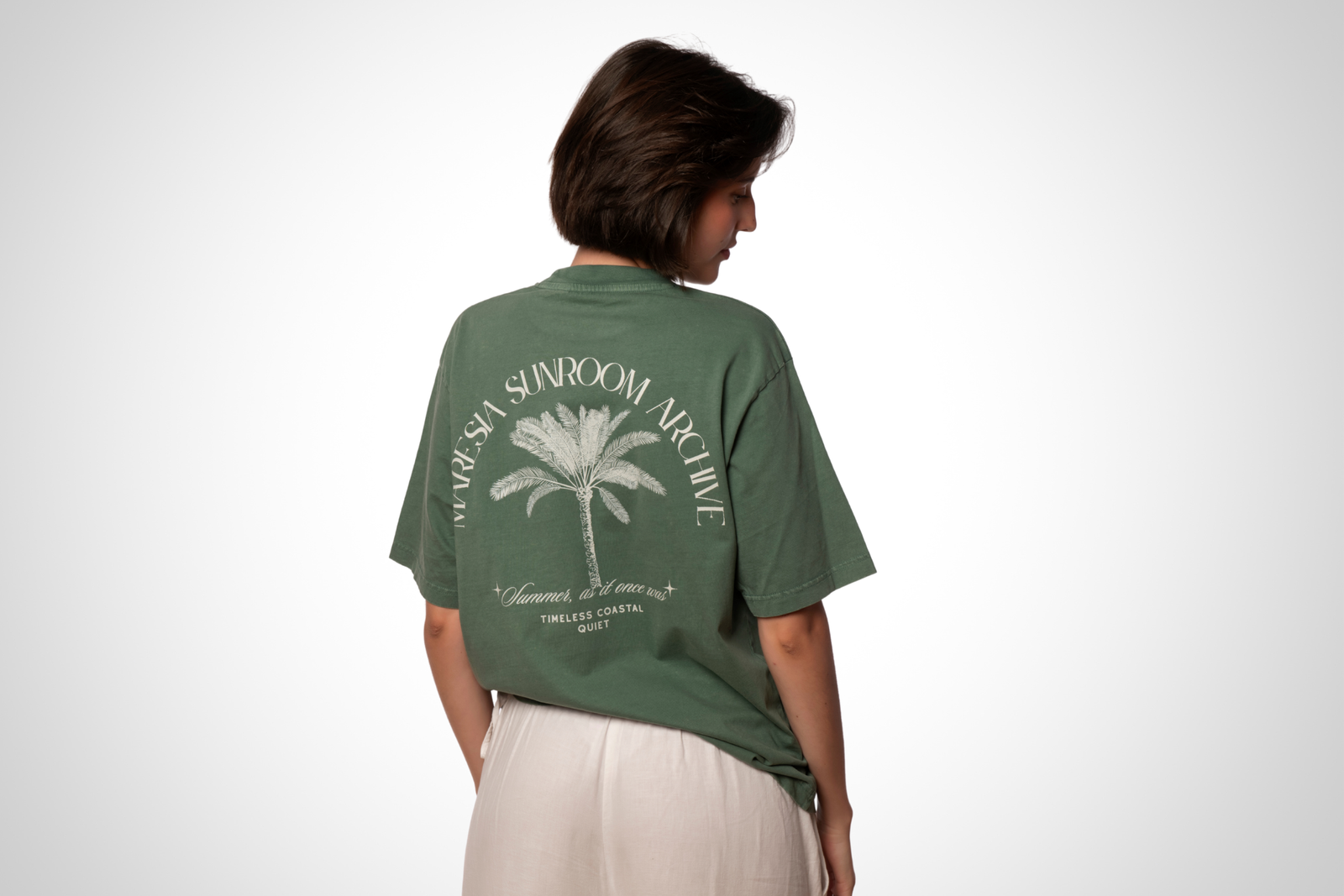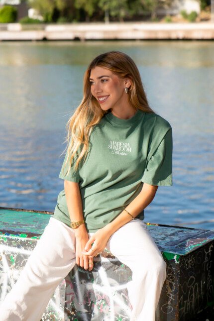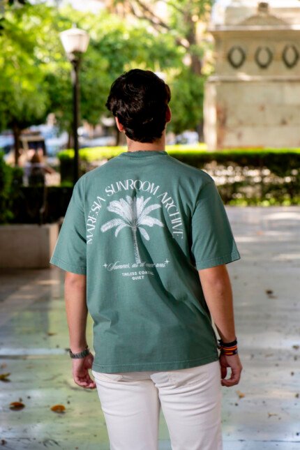 Camiseta oversized con efecto lavado en un elegante tono verde, confeccionada en algodón 100% orgánico premium de 200 g/m² para una textura suave y confortable ideal durante todo el año. Su fit oversized con hombros caídos aporta un estilo relajado y sofisticado. Un diseño que captura la nostalgia del verano eterno con la esencia única y el espíritu costero de Maresia.