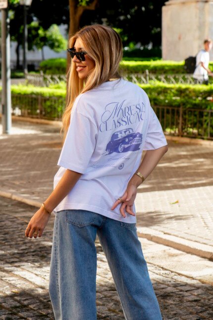 Camiseta oversized confeccionada en algodón 100% orgánico premium de 200 g/m², que garantiza una textura suave y confortable durante todo el año. Su fit oversized con hombros caídos ofrece un estilo relajado y moderno. El diseño presenta un elegante coche clásico con la inscripción “Maresia Classica GT Grand Touring”, evocando el espíritu aventurero y sofisticado de Maresia para quienes disfrutan de la elegancia atemporal con un toque retro.