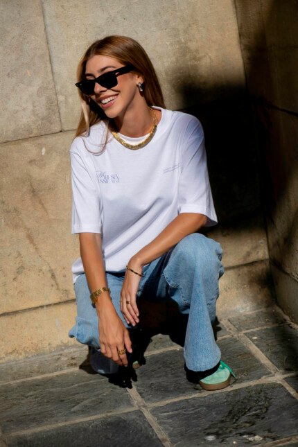 Camiseta oversized confeccionada en algodón 100% orgánico premium de 200 g/m² efecto lavado, que garantiza una textura suave y confortable durante todo el año. Su fit oversized con hombros caídos ofrece un estilo relajado y moderno.