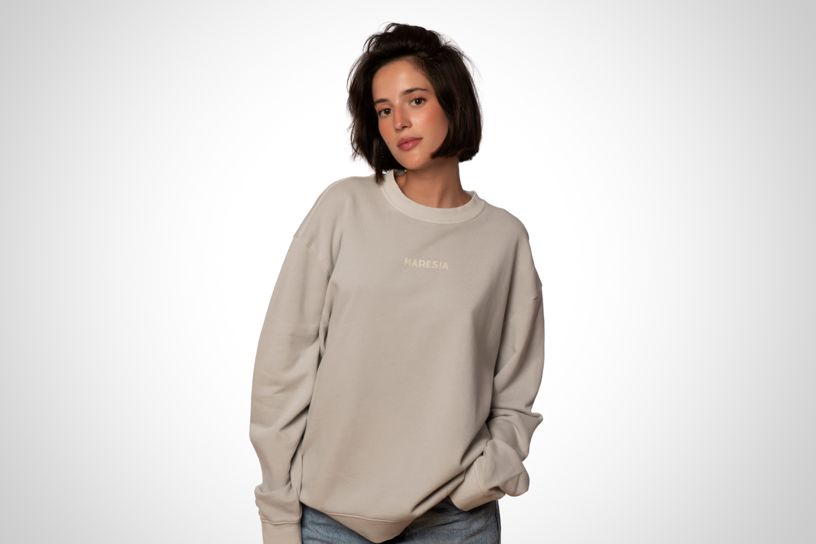 Vicente mide 1,75 y lleva una talla M. Isa mide 1,60 y lleva una talla M.CALM ELEGANCE HOODIE