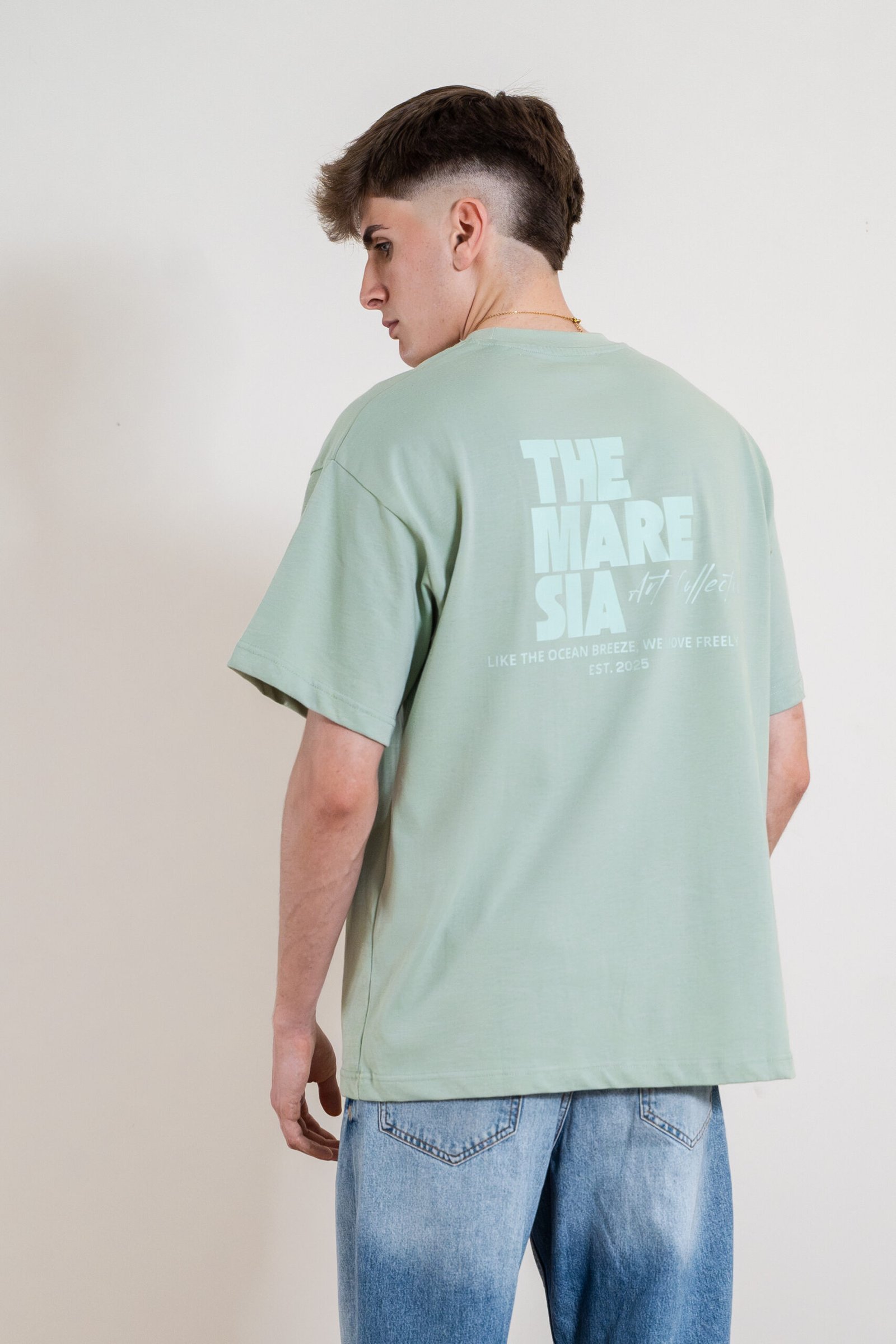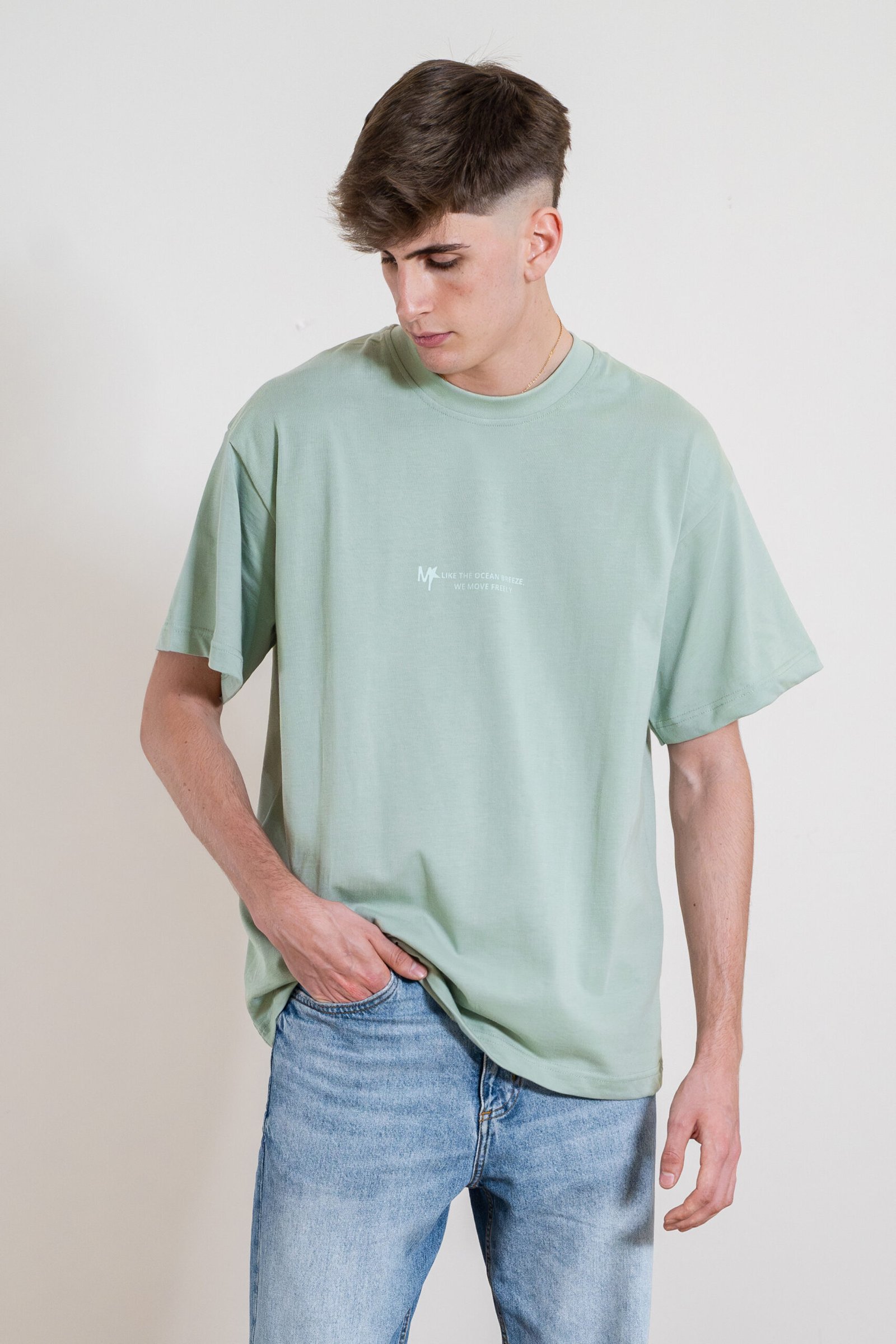 Diseñada con inspiración en la Costa de la Luz y la libertad del mar, esta camiseta oversized refleja el espíritu relajado y natural de la brisa marina. Su corte de hombros caídos y tejido premium ofrecen confort y estilo durante todo el año.