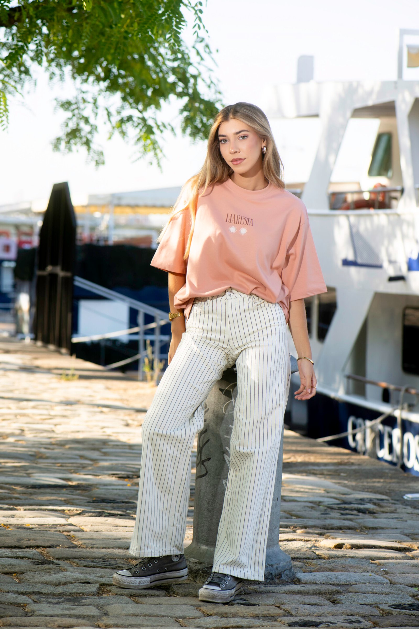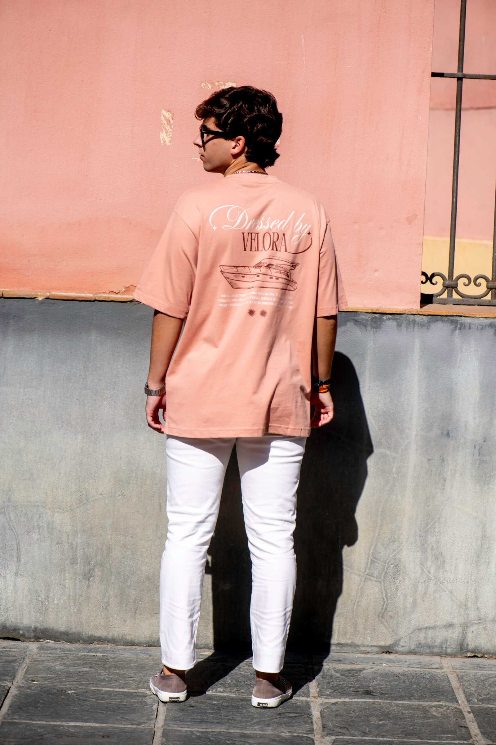 Camiseta oversized en un sofisticado color salmón, confeccionada en algodón 100% orgánico premium de 200 g/m² para una textura suave y confortable durante todo el año. Su fit oversized con hombros caídos aporta un estilo relajado y elegante. Un diseño que evoca el espíritu marítimo de Maresia y la esencia luminosa de Velora, perfecta para quienes buscan vestir la elegancia verano eterno.