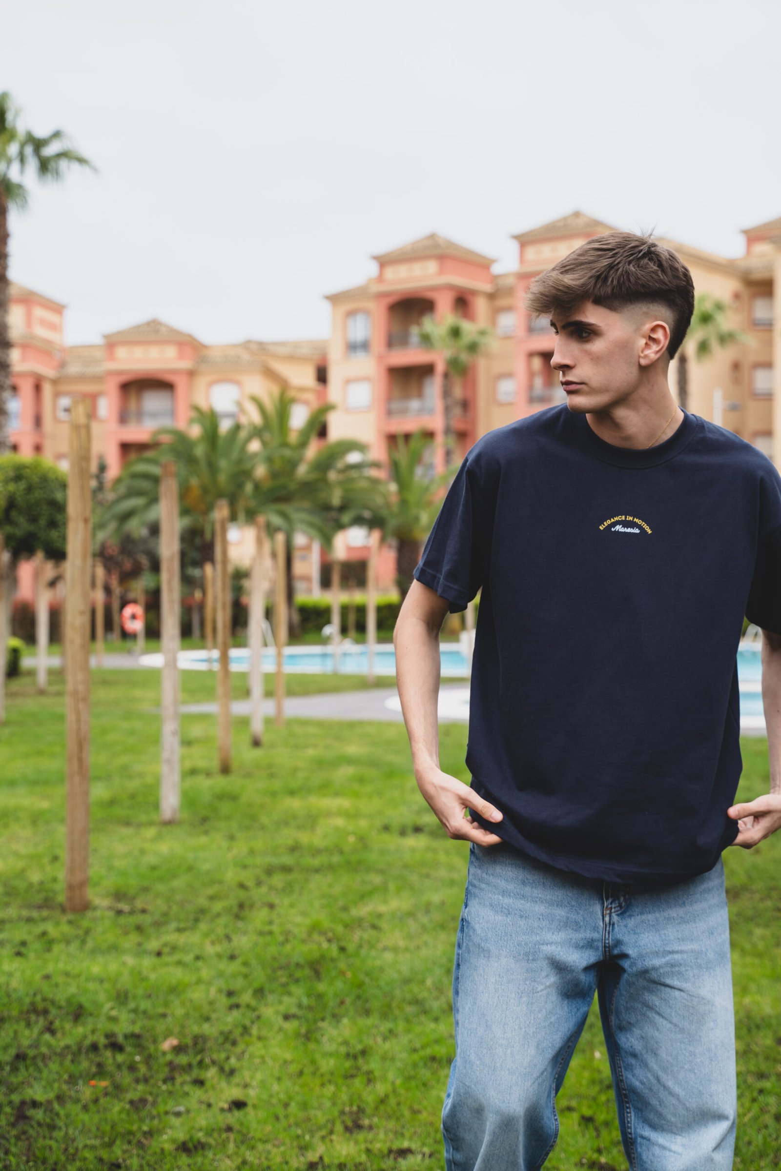 La Wave Breaker T-shirt representa la elegancia en movimiento, inspirada en la fuerza del mar y la creatividad del sur. Con un corte oversize y hombros caídos, esta prenda apuesta por el diseño como forma de expresión libre y atemporal.
